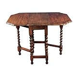 English Oak Barley Twist Gate Leg Table w Scalloped Corners